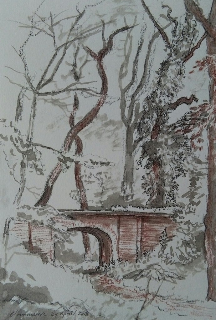 Park Den Haag Poort Landschap Natuur Krijt Inkt Tekening Figuratief Realistisch