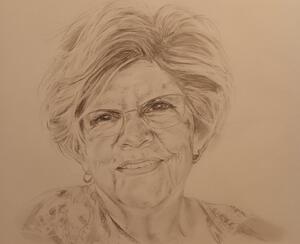 Yvonne (1970), Den Bosch, tekent portretten van foto. Zwart-wit, aquarelpotlood, realistisch of met extra.