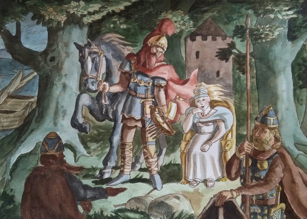 Geschiedenis Verhalend Germanen Bataven Aquarel Tekening Figuratief Realistisch
