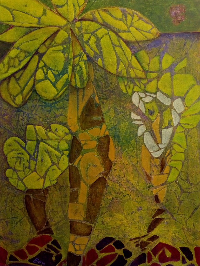 Iedereen die wel eens in het bos wandelt heeft van die momenten: 'zag ik daar iets, wat bewoog daar?'. Alleen de echte gelovigen zien de kabouters, trollen en bosnimfen in de levende stilte als een verstild leven. Dit werk heeft meegedaan aan de wedstrijd van InBeeld 2017, Stille Levens.(zie ook: https://www.hklimburg.nl/disciplines/beeldende-kunst/projecten/inbeeld.html). Ondanks een mooi juryrapport (zie 'publicaties') was de voorronde het maximale.