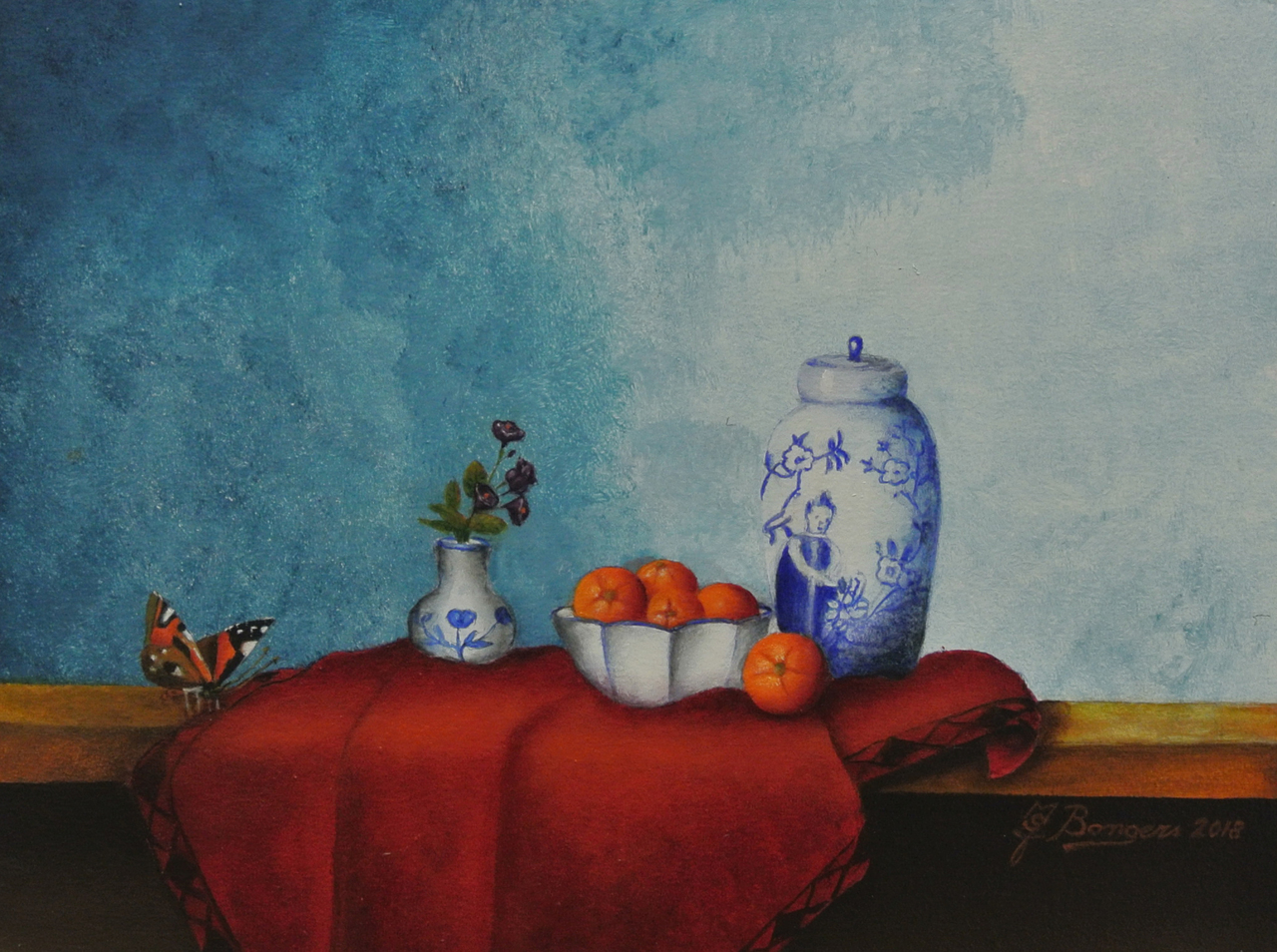 Mijn werk bestaat uit realistische stillevens met composities die een impressie weergeven uit het verleden, maar ook uit het huidige leven.