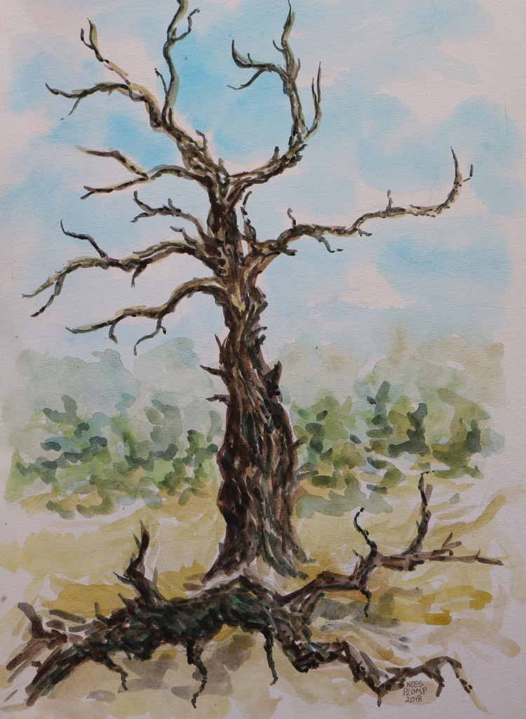 Aquarel Van Dode Boom In De Savanna Namibie