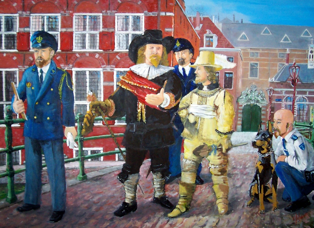 Van Olieverf Paneel Op Nacht Rembrandt Willem Linnen Frans Wacht Brandweerman Politieman Cocq Politiehond Banninck Ruytenburgh