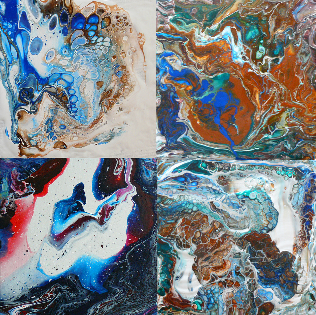 Acryl pouring op 4 canvas schilderijen