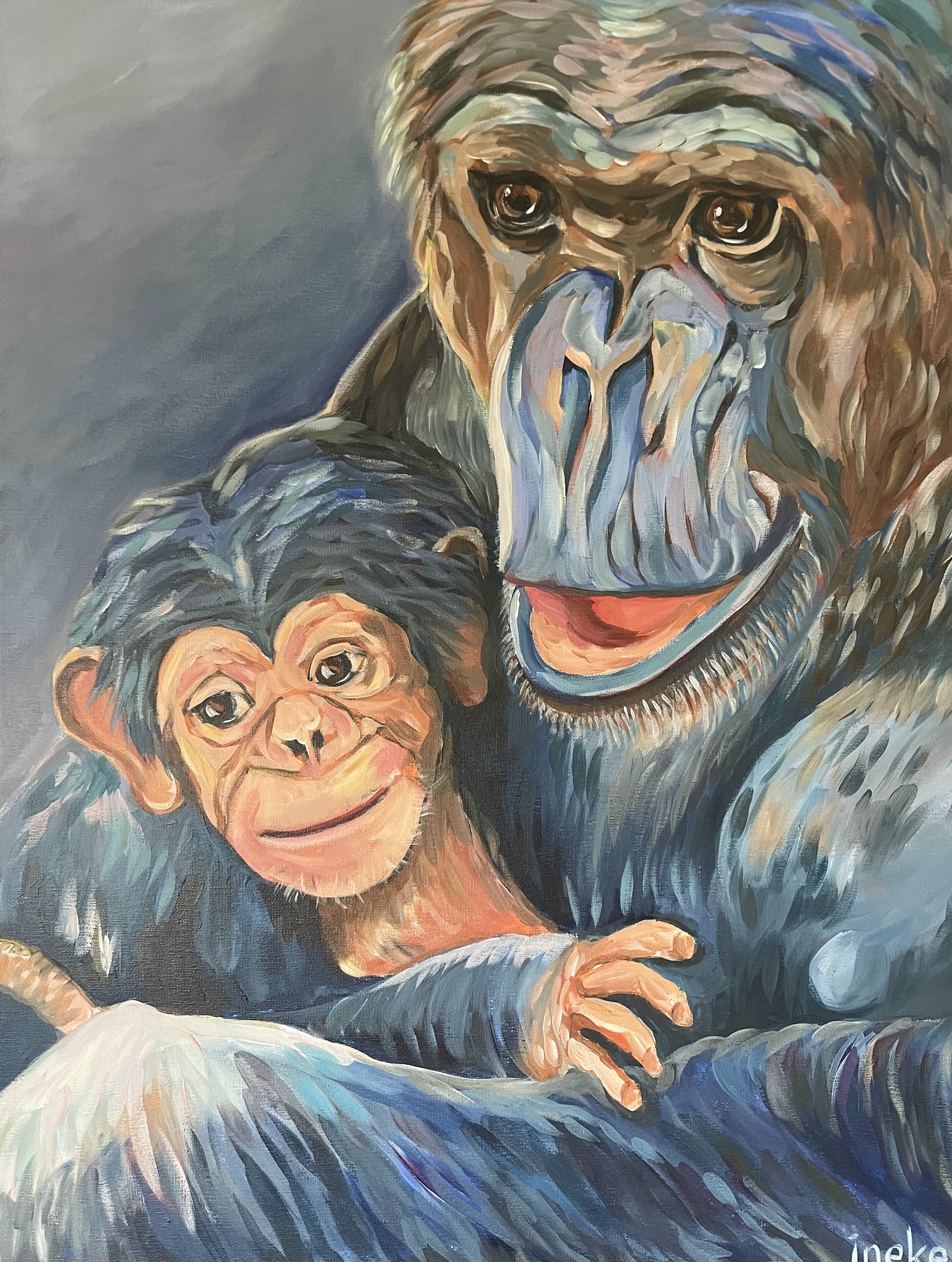 Acryl Painting Acrylverf Love Verf Chimpansee Schildeij Acrylics Monkey Chimpansees Affection Chimpanzee