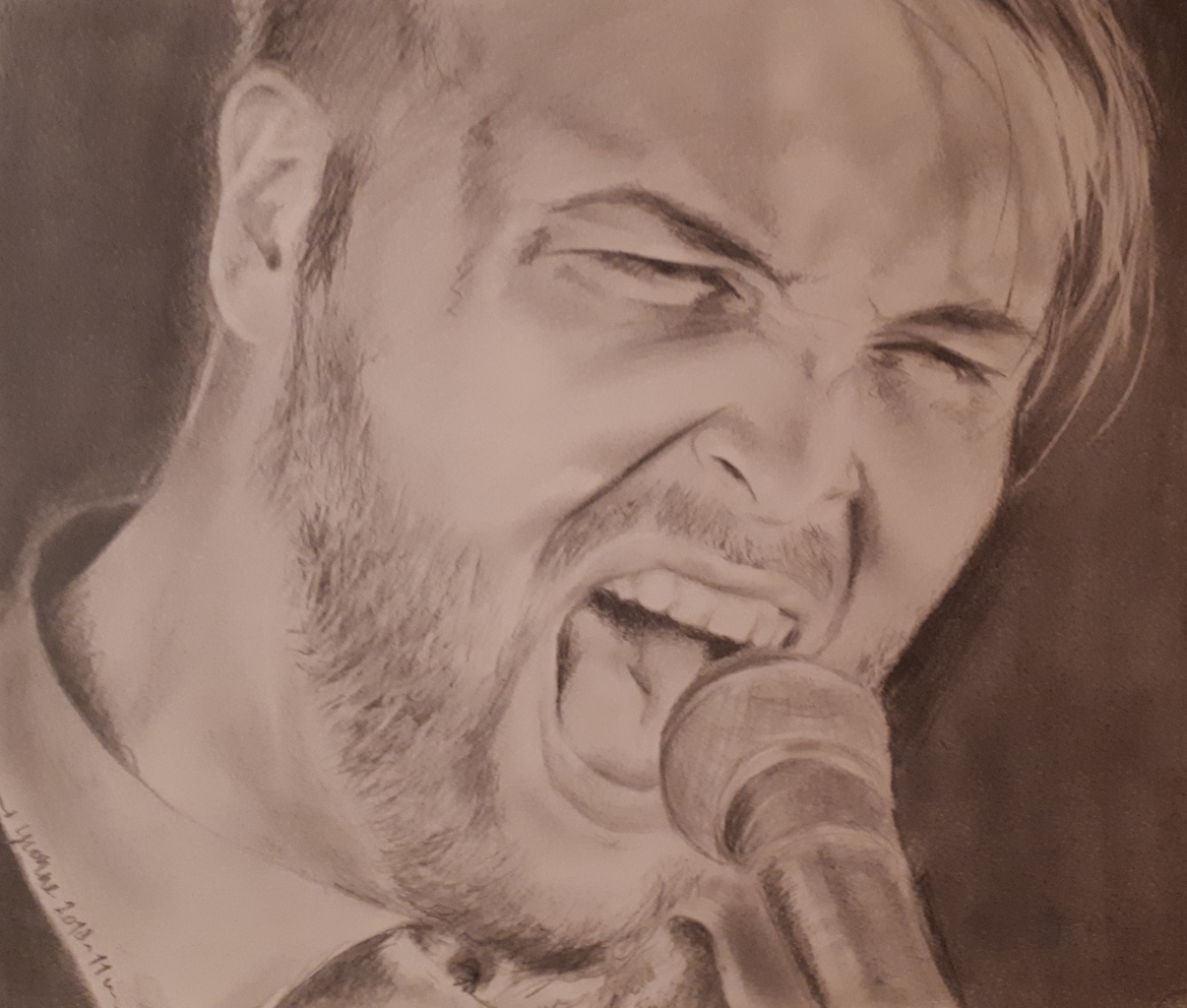 Yvonne (1970), Den Bosch, tekent portretten van foto. Zwart-wit, aquarelpotlood, realistisch of met extra.