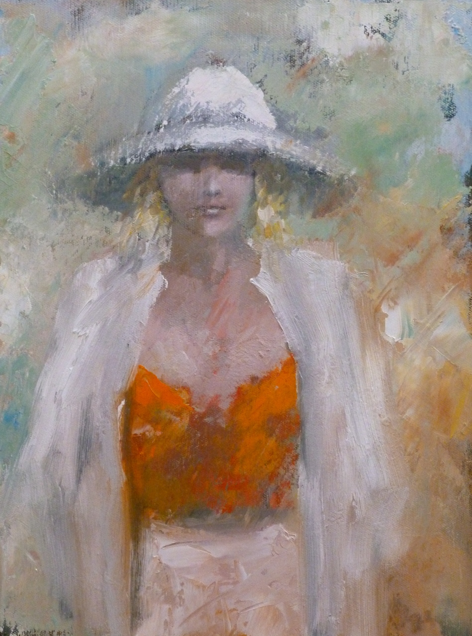 Figuratief Impressionistisch Bart Buijsen Jonge Vrouw Hoed Rood Wit