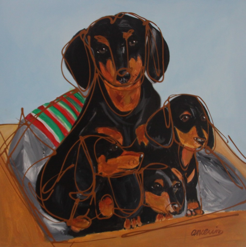 Tekkel met jonge pups.