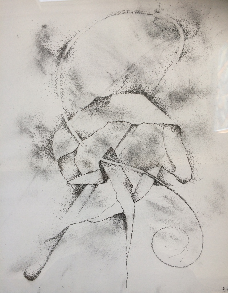 Pen, inkt en houtskool op papier