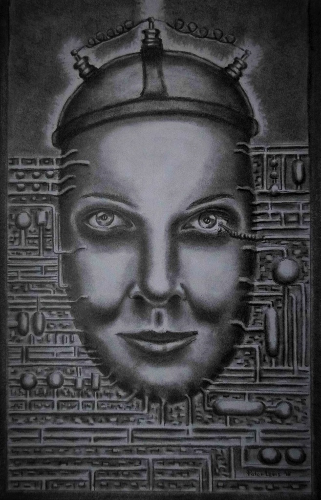 Regeneratie om nooit meer oud te worden, tekening in de jaren 20 stijl van de vorige eeuw (Fritz Lang Metropolis)