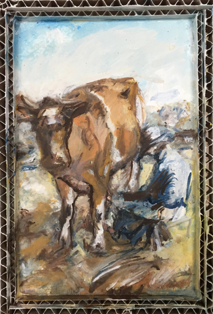 vrij naar Franz Courtens: "Het melken van de koe" ca 1890