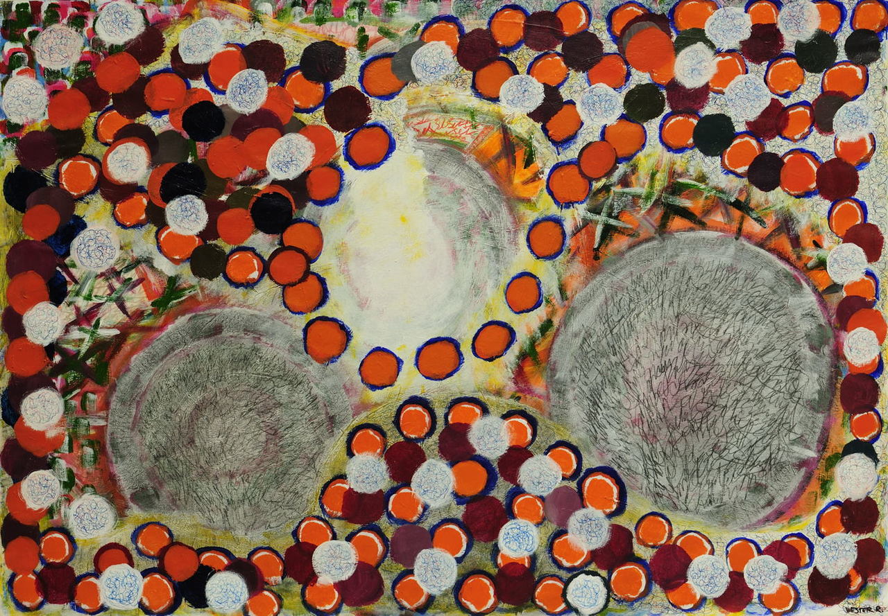 acrylverf,potlood,ballpoint op papier