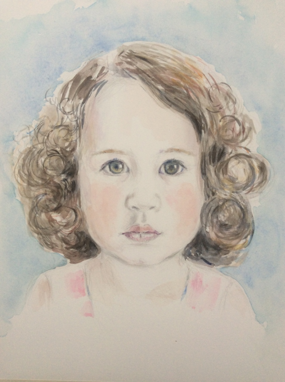 Meisjesportret getekend en in aquarelverf uitgevoerd.