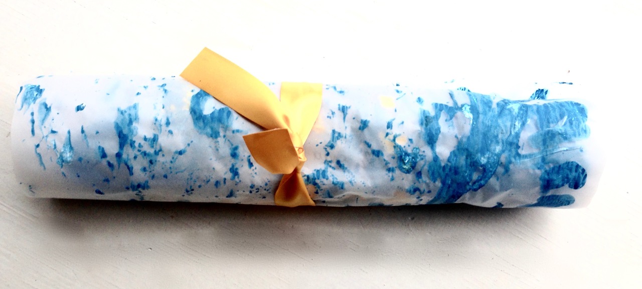 Ingerold transparant papier, acryverf, tekst en gedroogde bloemen.