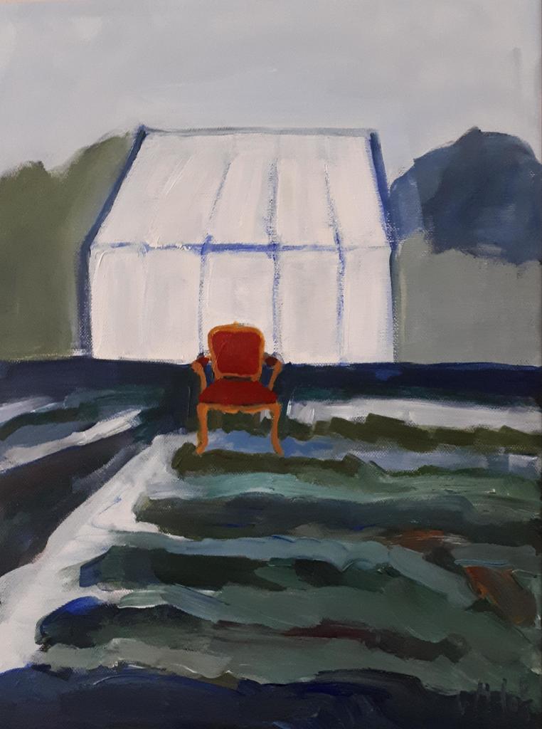 Een lege stoel voor een kas in een volkstuintje, en vooral een herinnering, een ode, een monument.