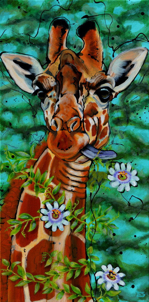 Giraffe eet Passiebloemen