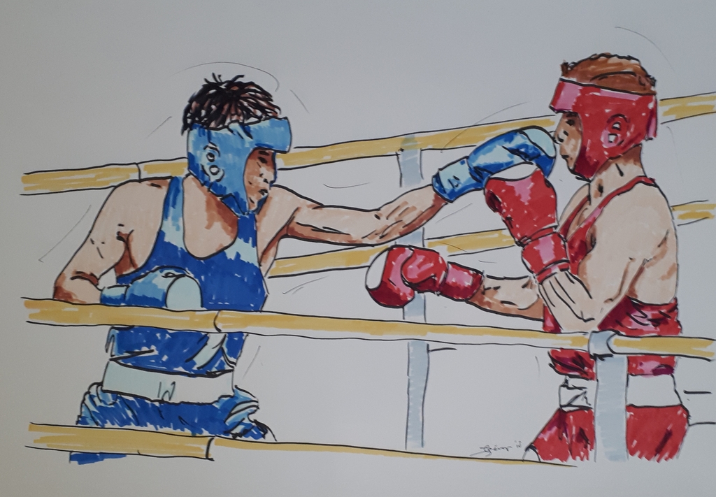 Georges Dérop, kunstschilder met als thema Sport en bewegen. Gefascineerd door het schermen van vroeger tot nu. De spanning die uitgaat van om dat ene moment op doek te zetten inspireert mij. Maar ook de natuur in al zijn pracht en glorie zet ik graag op het doek. Speciaal onderwerp is de geschiedenis van het zwaard. van actie tot en met stilleven, van Romeinen tot heden. En verder maak ik portretten van mijn familie en teken ik dieren en vogels uit de wildernis alsmede huis dieren