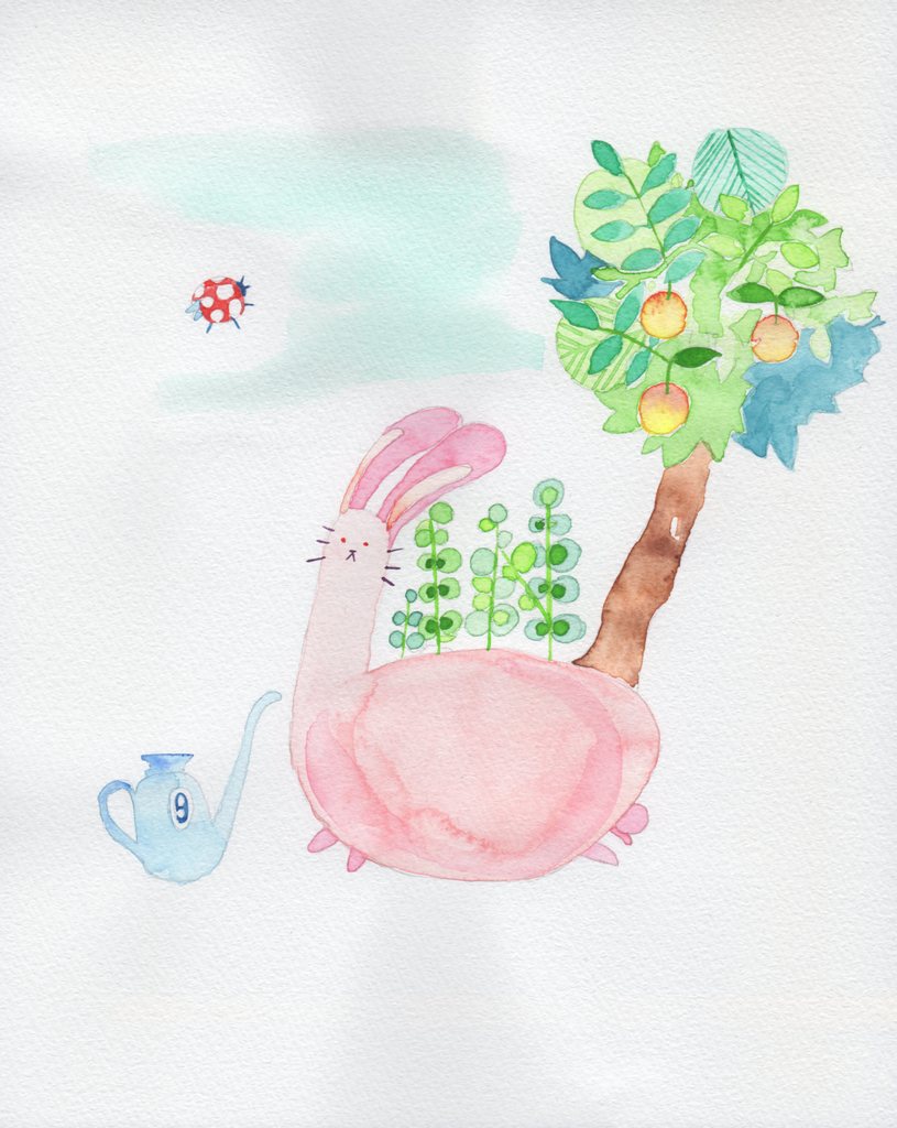 A ladybird and planter in the shape of a rabbit