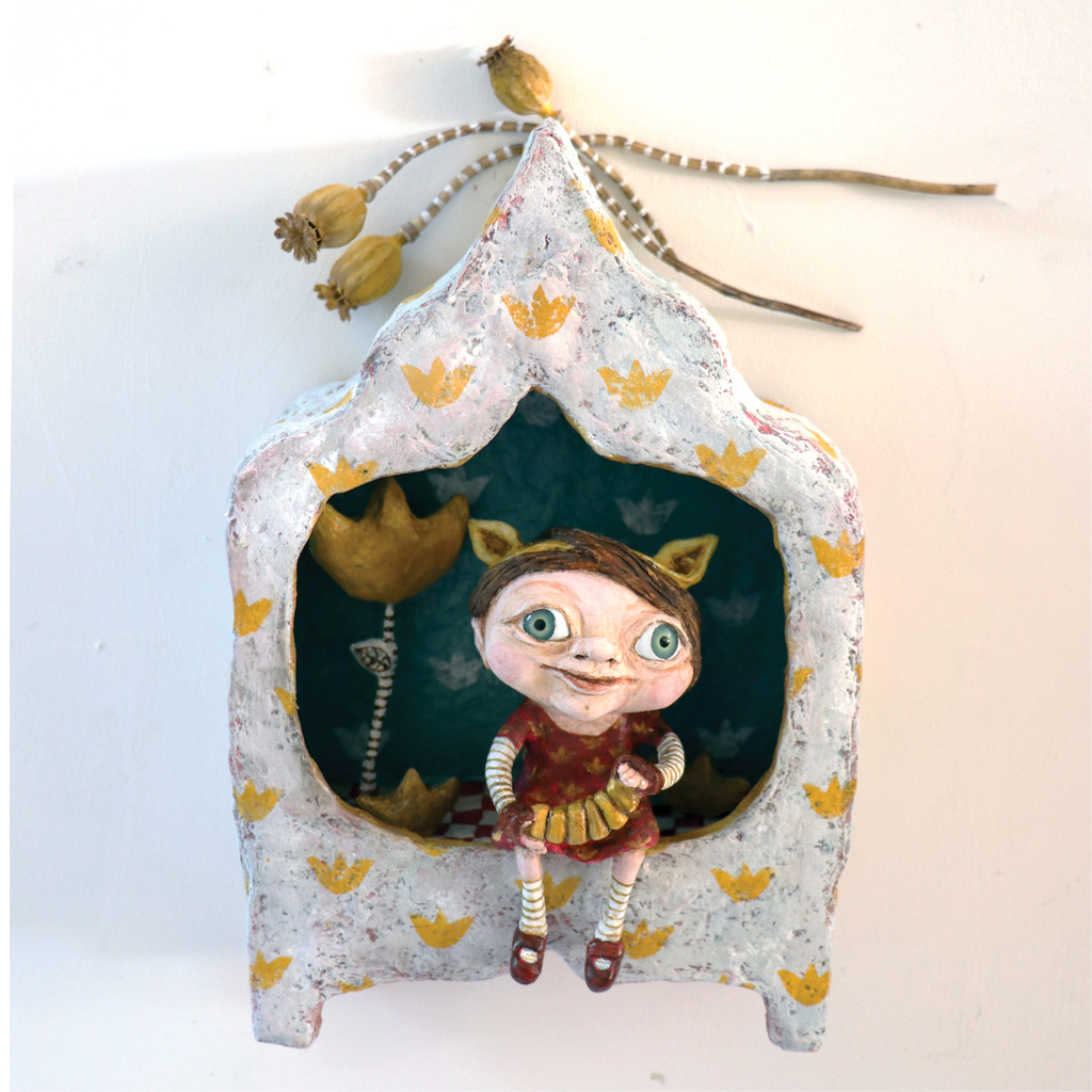 Summer is een vrolijk handgemaakte sculptuur/kijkdoos. Kan zowel hangend als staand geplaatst worden.