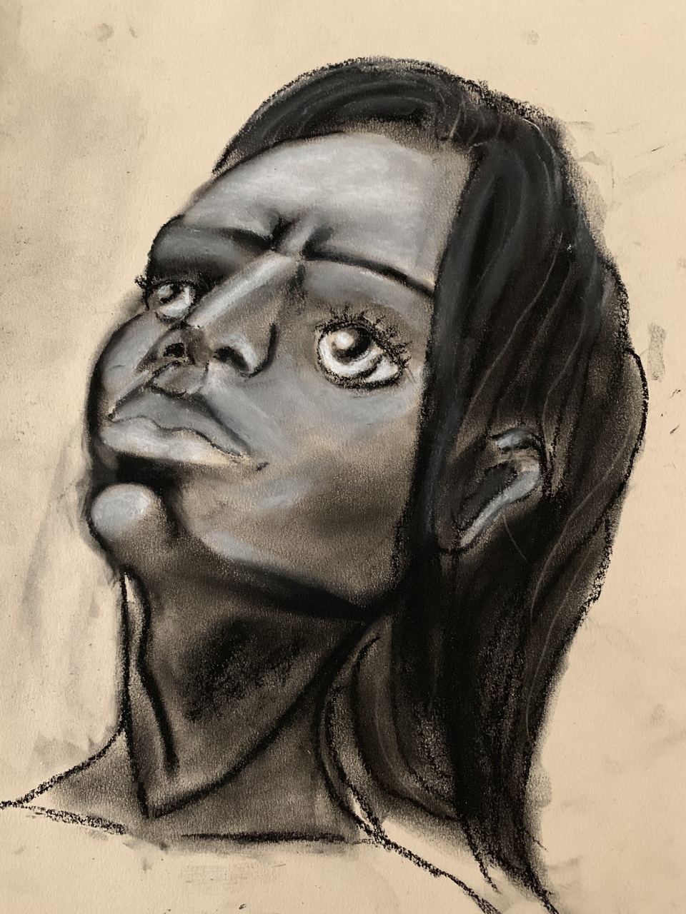 Zelf bedacht meisje. Gemaakt met houtskool.