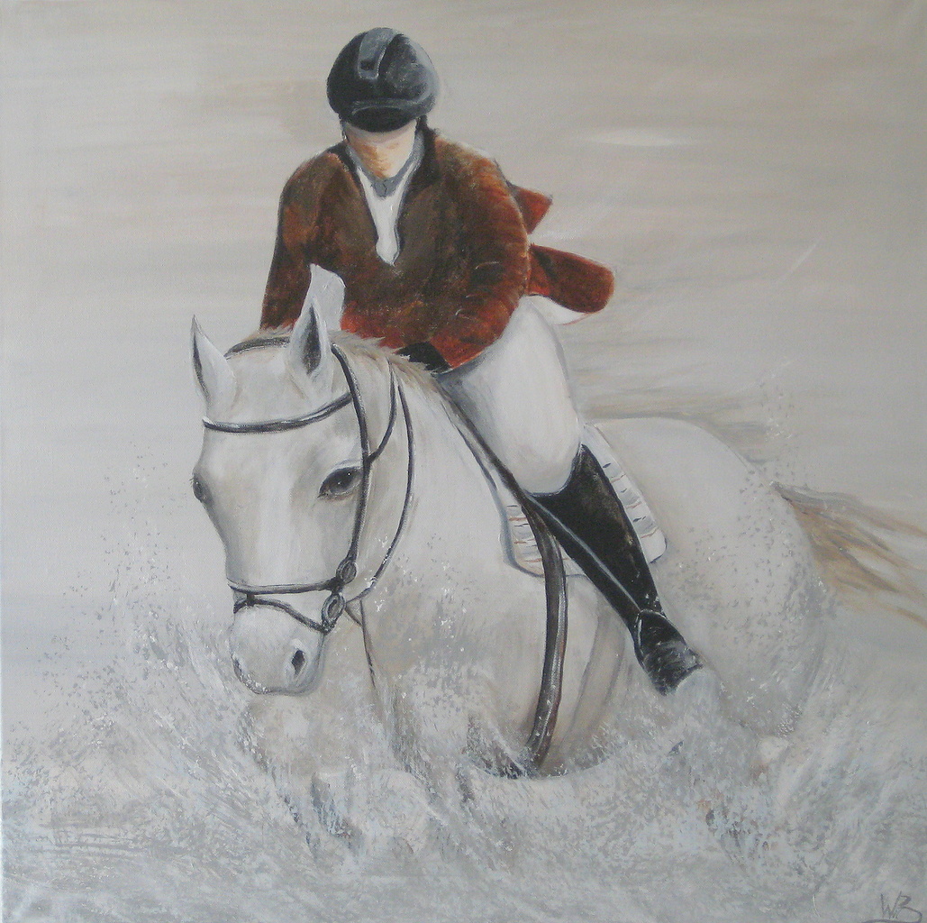 Ruiter op Paard, sfeer , beweging in water.