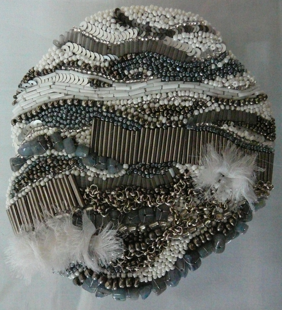Broderie d'art op licht gebogen glas - staand werk