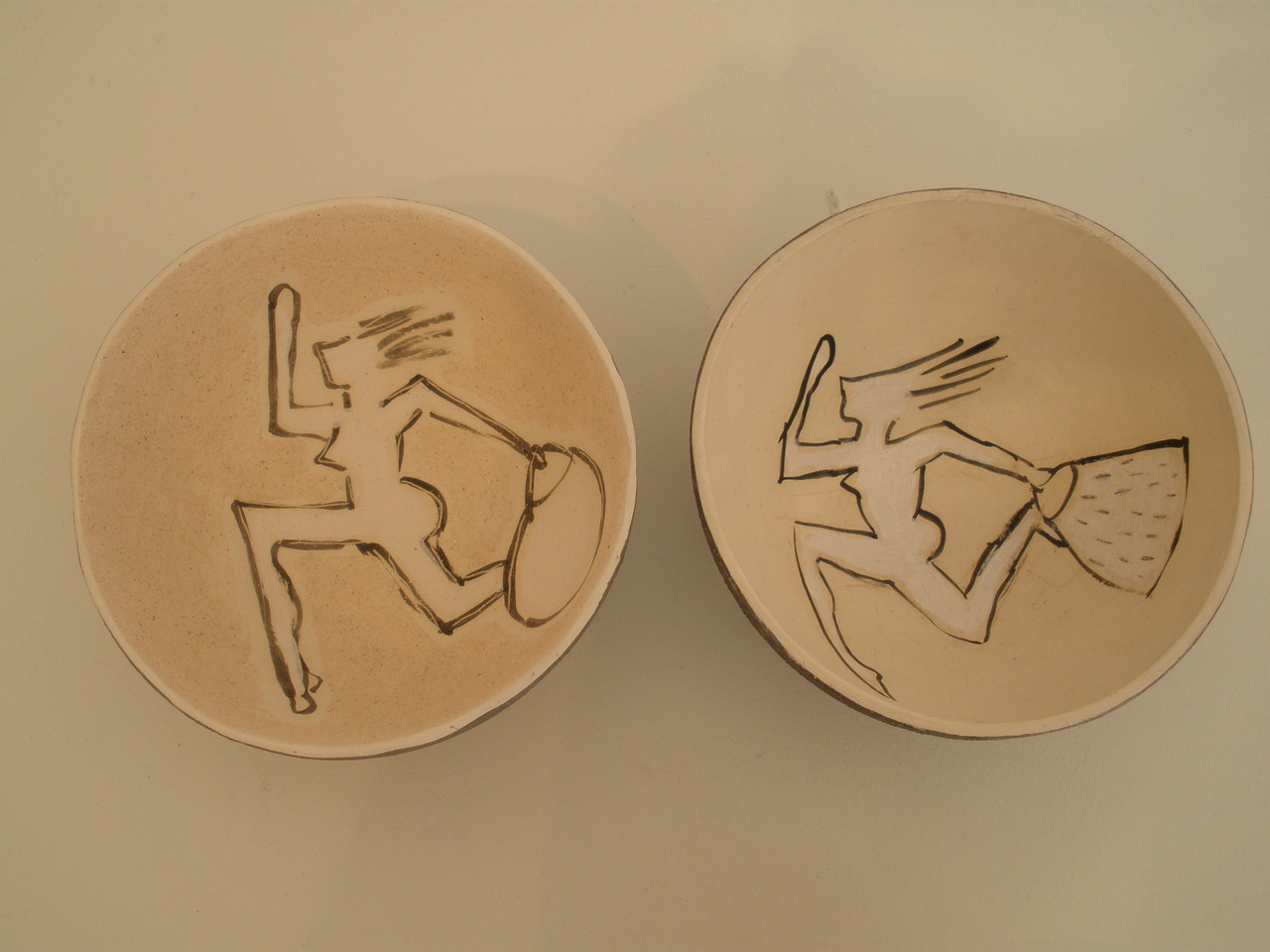 kommetjes gedecoreerd met rennende dames met boodschappentassen