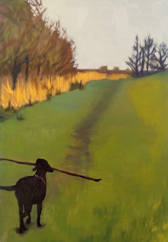 Lekker aan de wandel met de hond achter de dijk langs het Spui.
