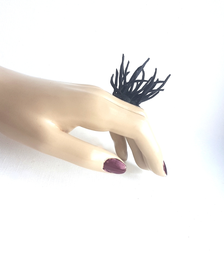 Draagbare kunst , statement sieraden handgemaakt van hergebruikt leer Wearable art - recycled leather
