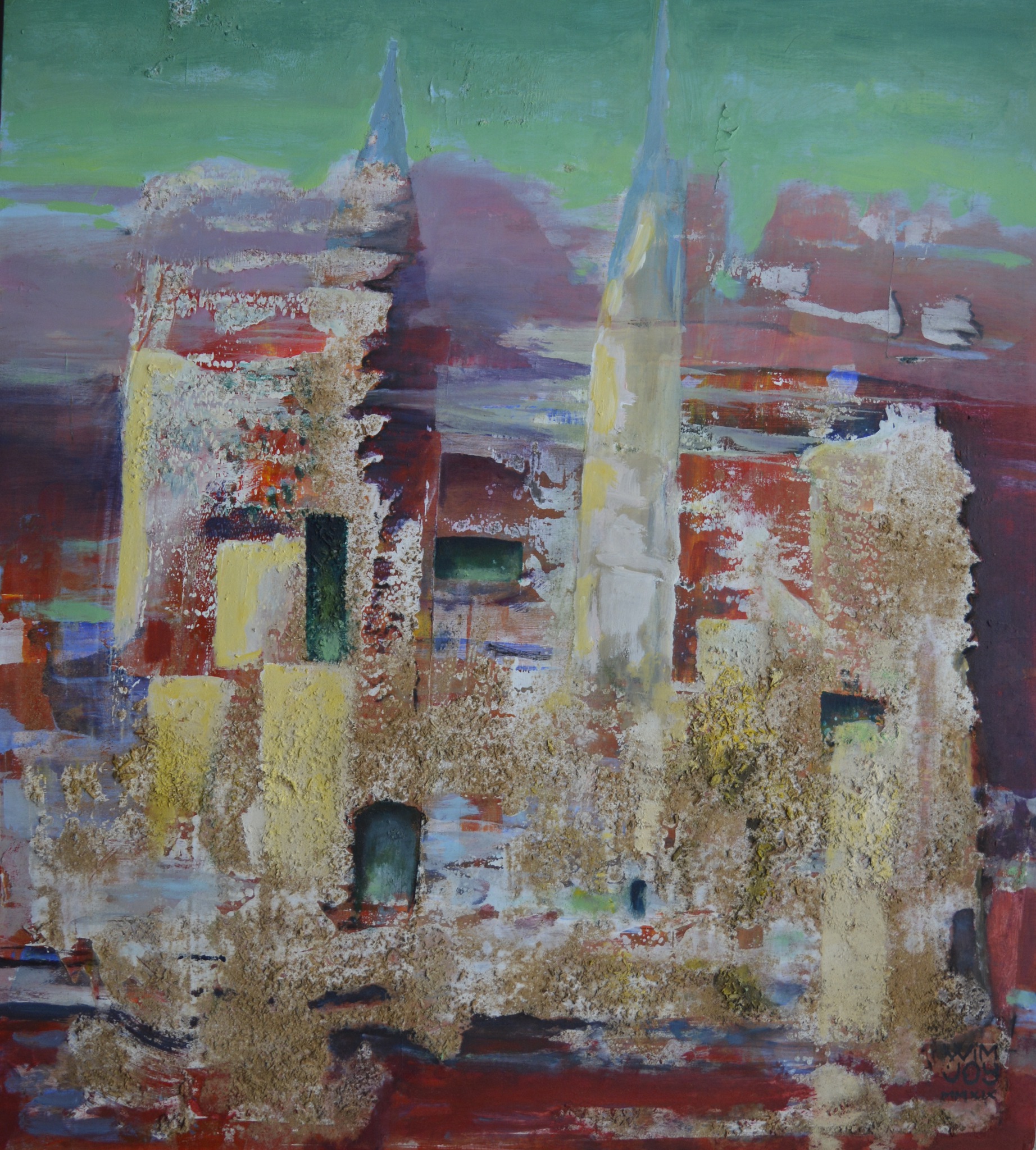 Wim van Veelen (1953) schildert Hij heeft zich ontwikkeld bij Upgraders-in-Art in Arnhem.