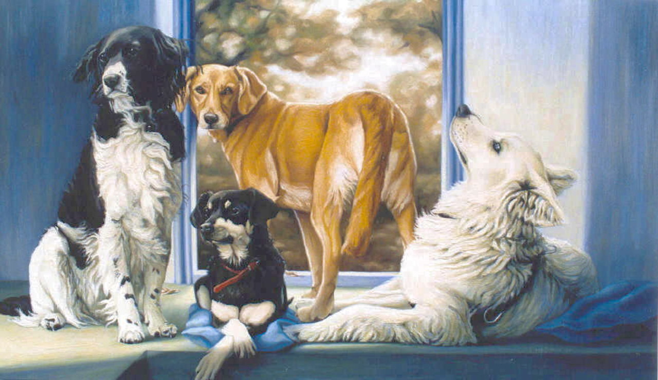 Schilderij Portret Honden Dierportretten Dieren Licht Dier Olieverf Schilderkunst Natuur Schilderijen Koppen Hond Deur Schaduw Interieur Friese Dierportret Terrier Poseren Pose Hondenportretten Scherpte Poses Geënsceneerd