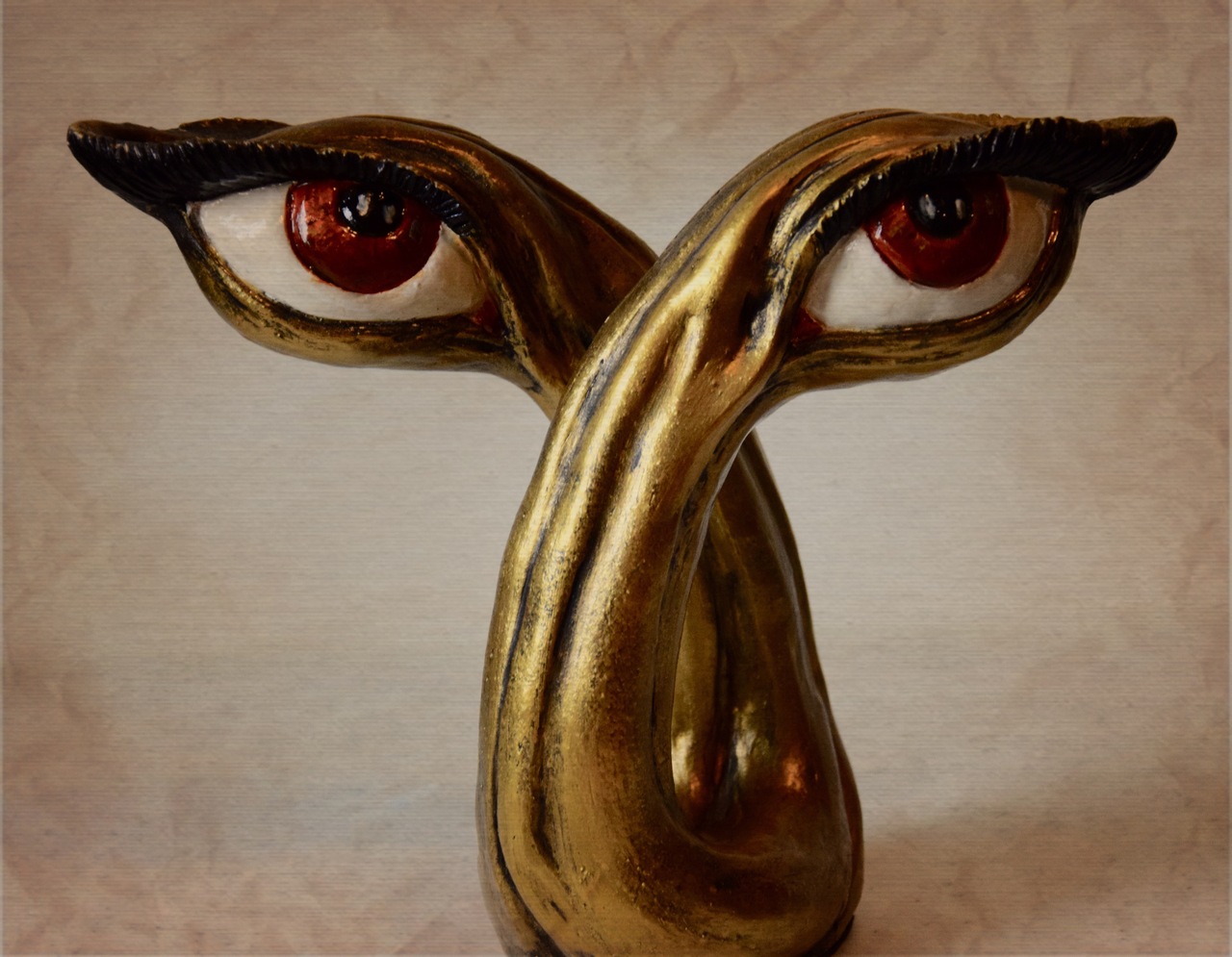 Bewerkte foto van een door mijzelf gemaakt keramiek beeld ogen van de ziel