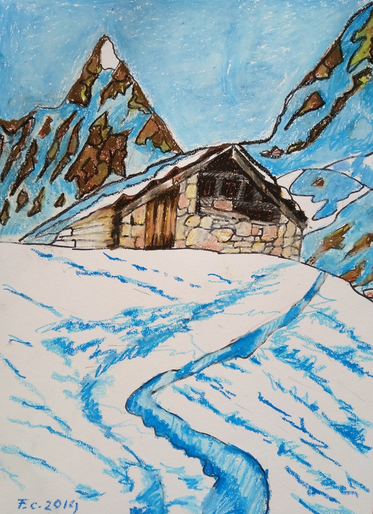 Blokhut in de sneeuw