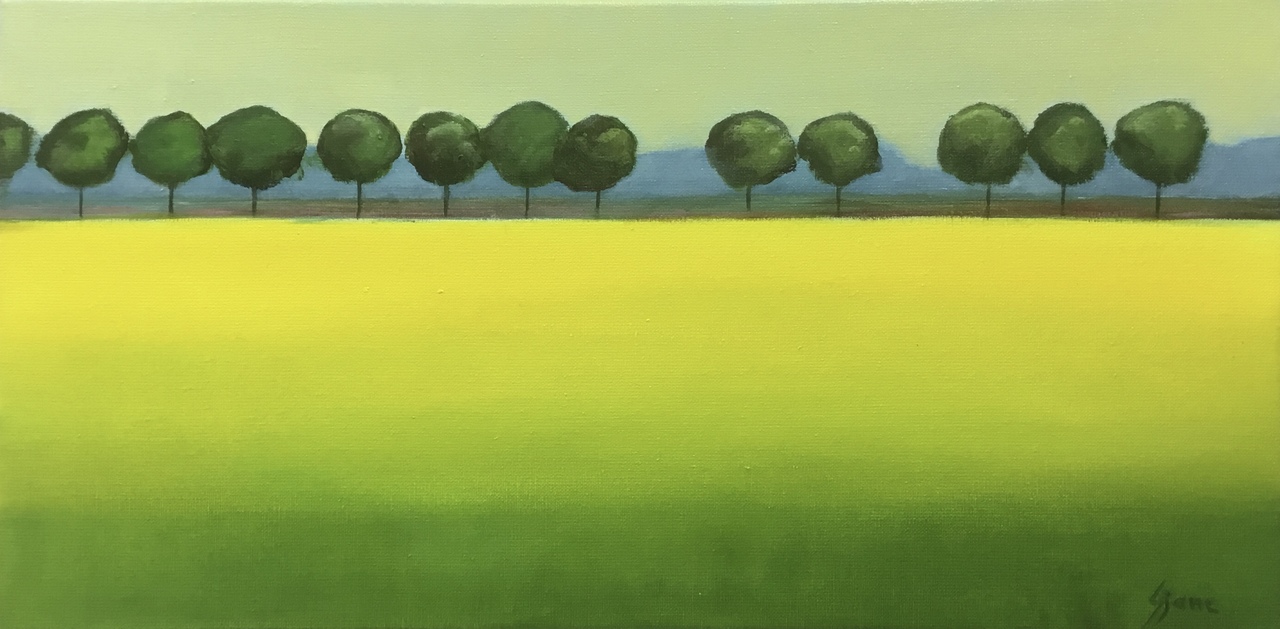 Het landschap is mijn grootste inspiratiebron. In de zomer heb ik veel buiten geschilderd. Mijn landschappen zijn kleurrijk en sterk geabstraheerd. Op het moment zijn mijn landschappen abstract.