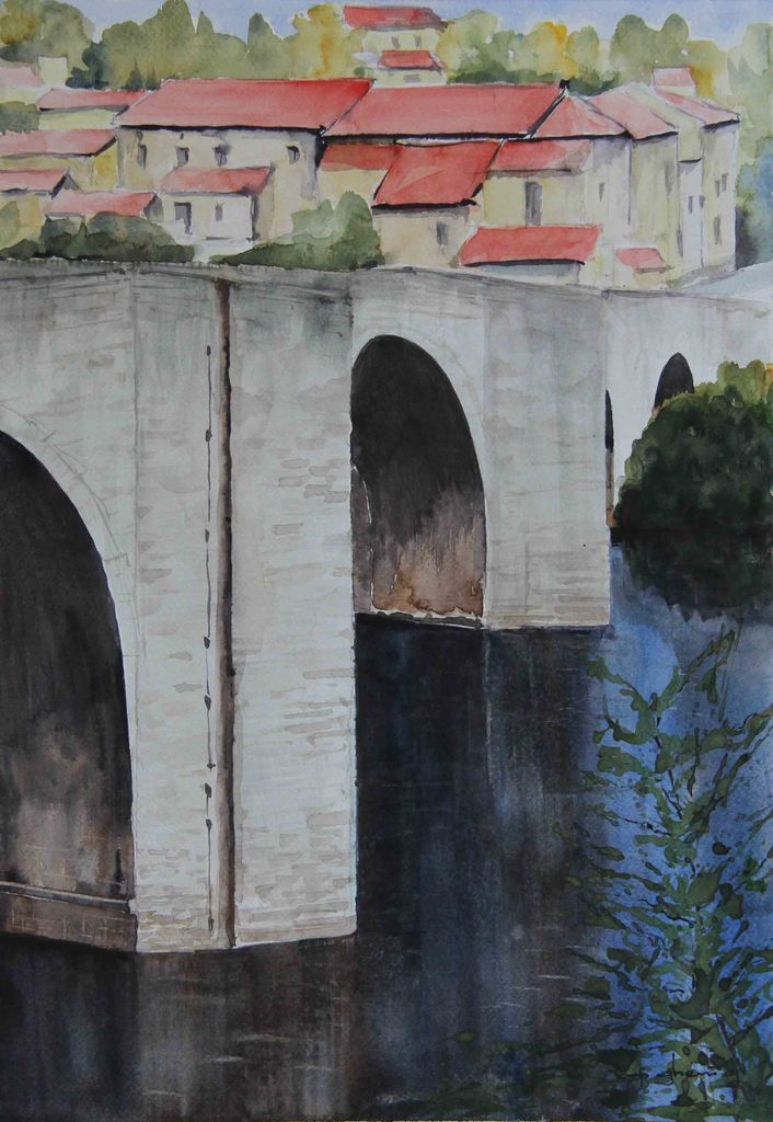 Frankrijk Aquarel Brug Joop Ghering Joopghering