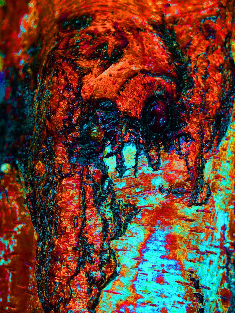 Een detail van een boom, extreem in kleur bewerkt om een overeenkomst te krijgen met mijn kleurrijke schilderwerken. Neem vrijblijvend contact op over afdruk, formaat en prijs.