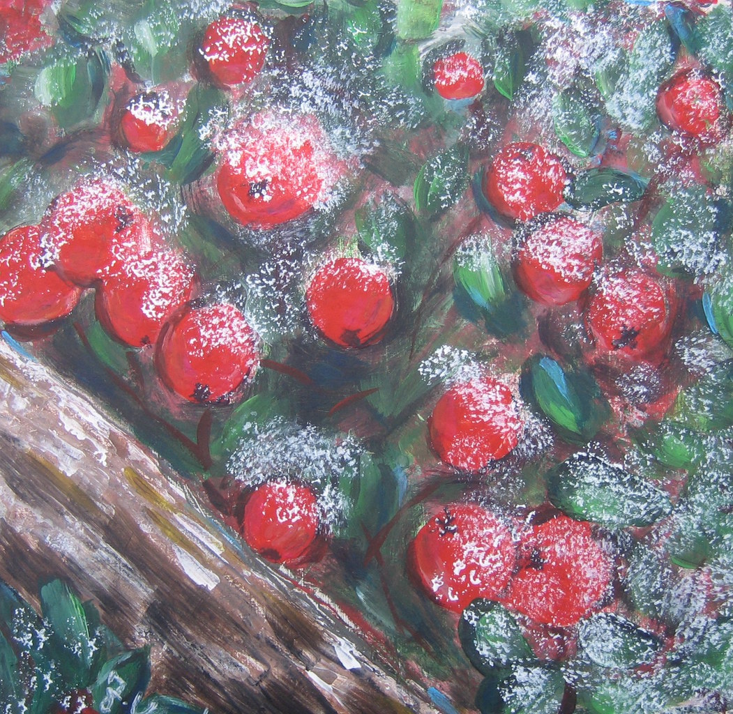winterse rode bessen op paneel