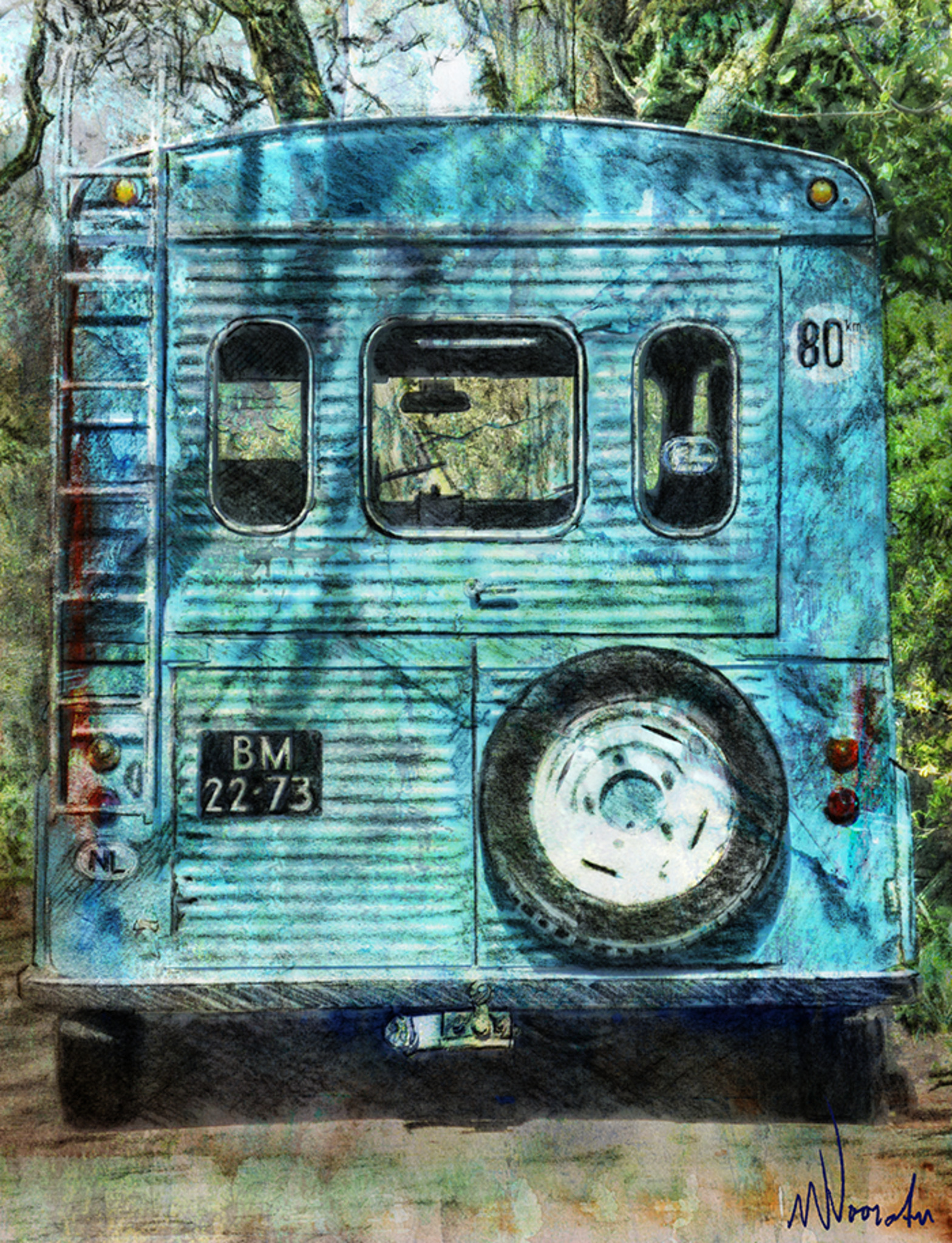 Grafische kunst op Dibond Diverse teken- en schildertechnieken, fotobewerking De Citroën HY blijft een leuk busje.