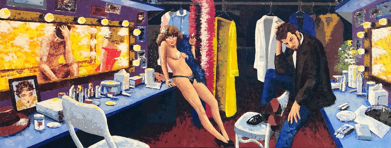 Schilderij Vrouw Naakt Kleurrijk Olieverf Theater Contact Paletmes Aandacht Backstage Kleedkamer Verleiding Tom Waits