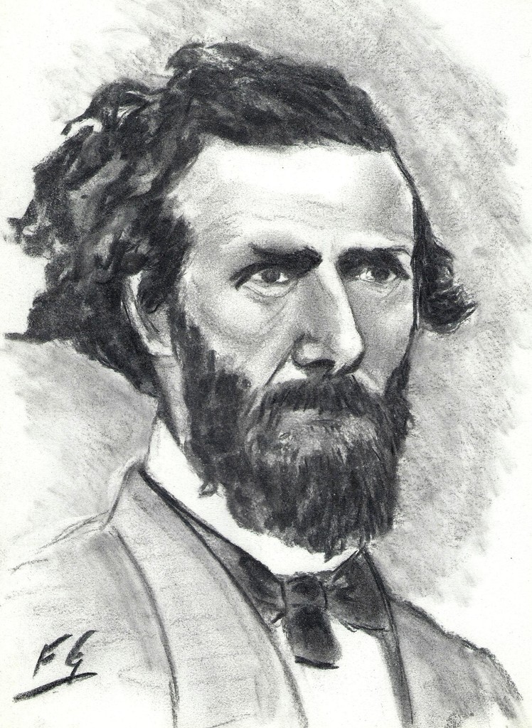 Portret studie van een amerikaanse staatsman uit de 19de eeuw in houtskool naar foto referentie.