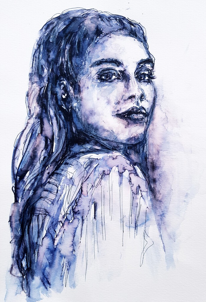 Portret Aquarel Waterverf Watercolour Portrait Painting Drawing Figuratief