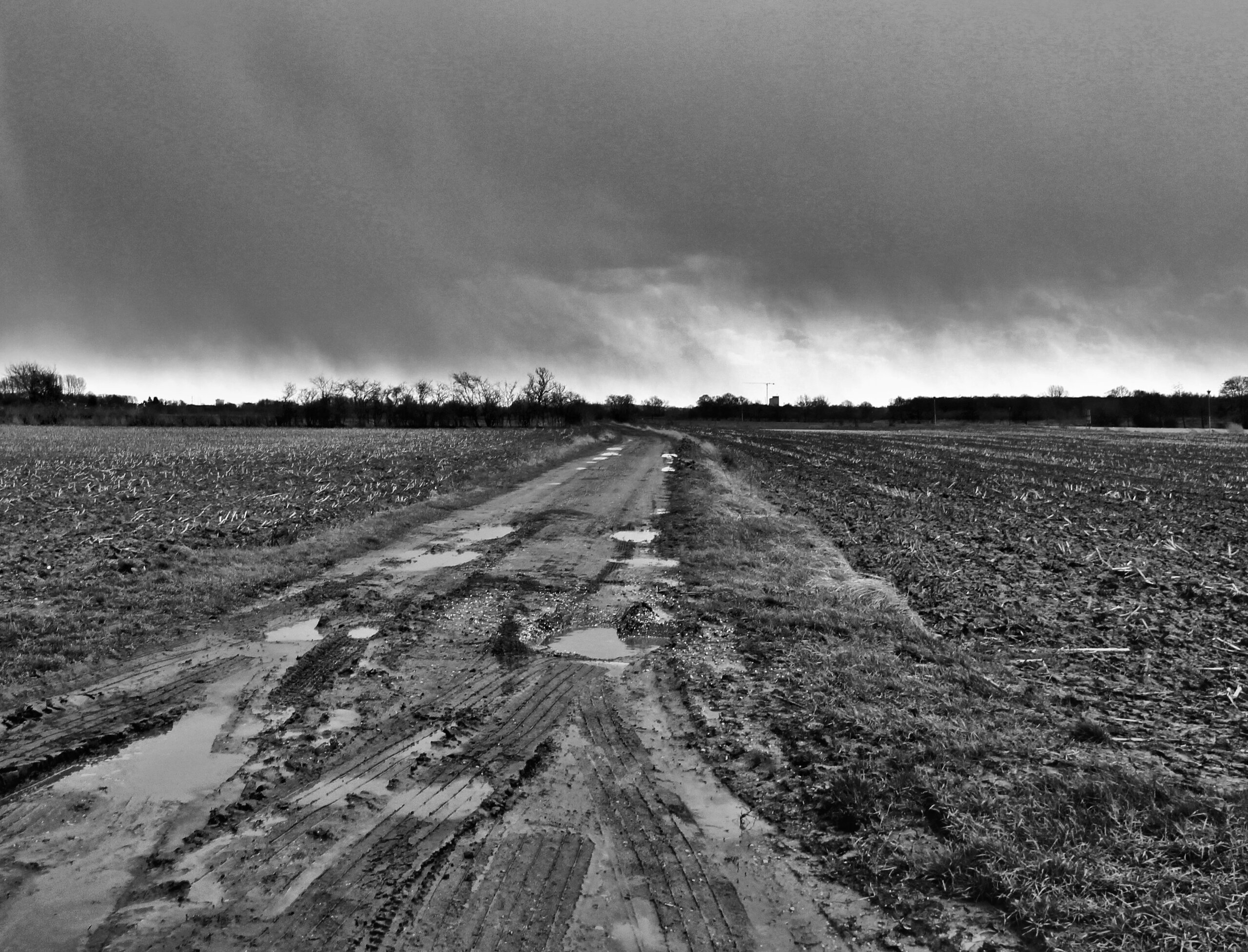 Doorweekte akker met nog een bui op komst