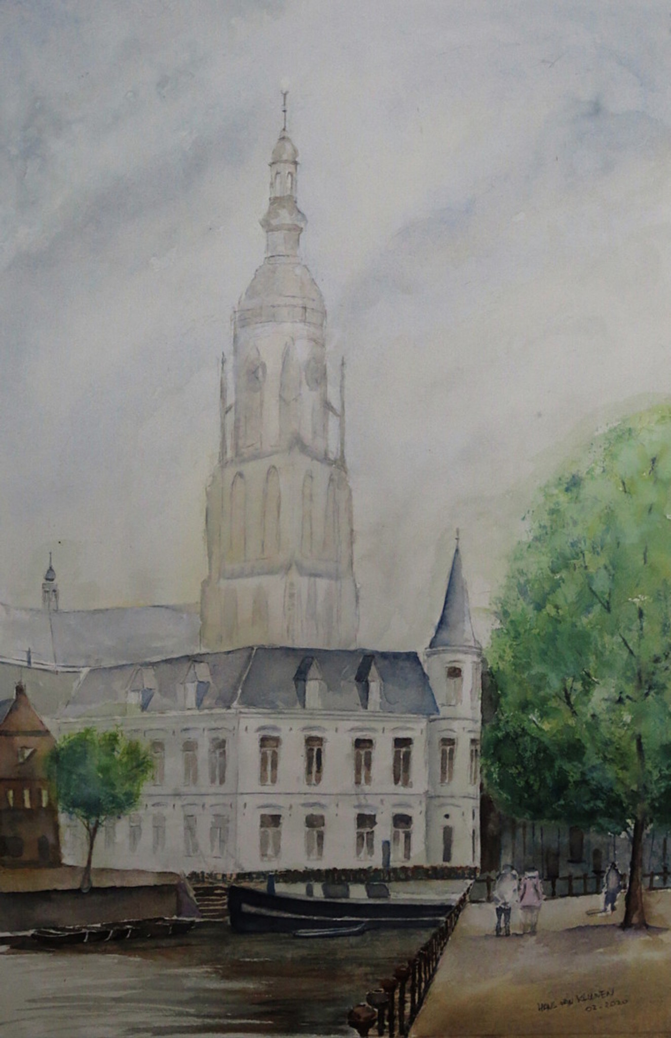 Blik op het 'Oude postkantoor' in Breda.Geschilderd naar een foto vanaf de Prinsenkade