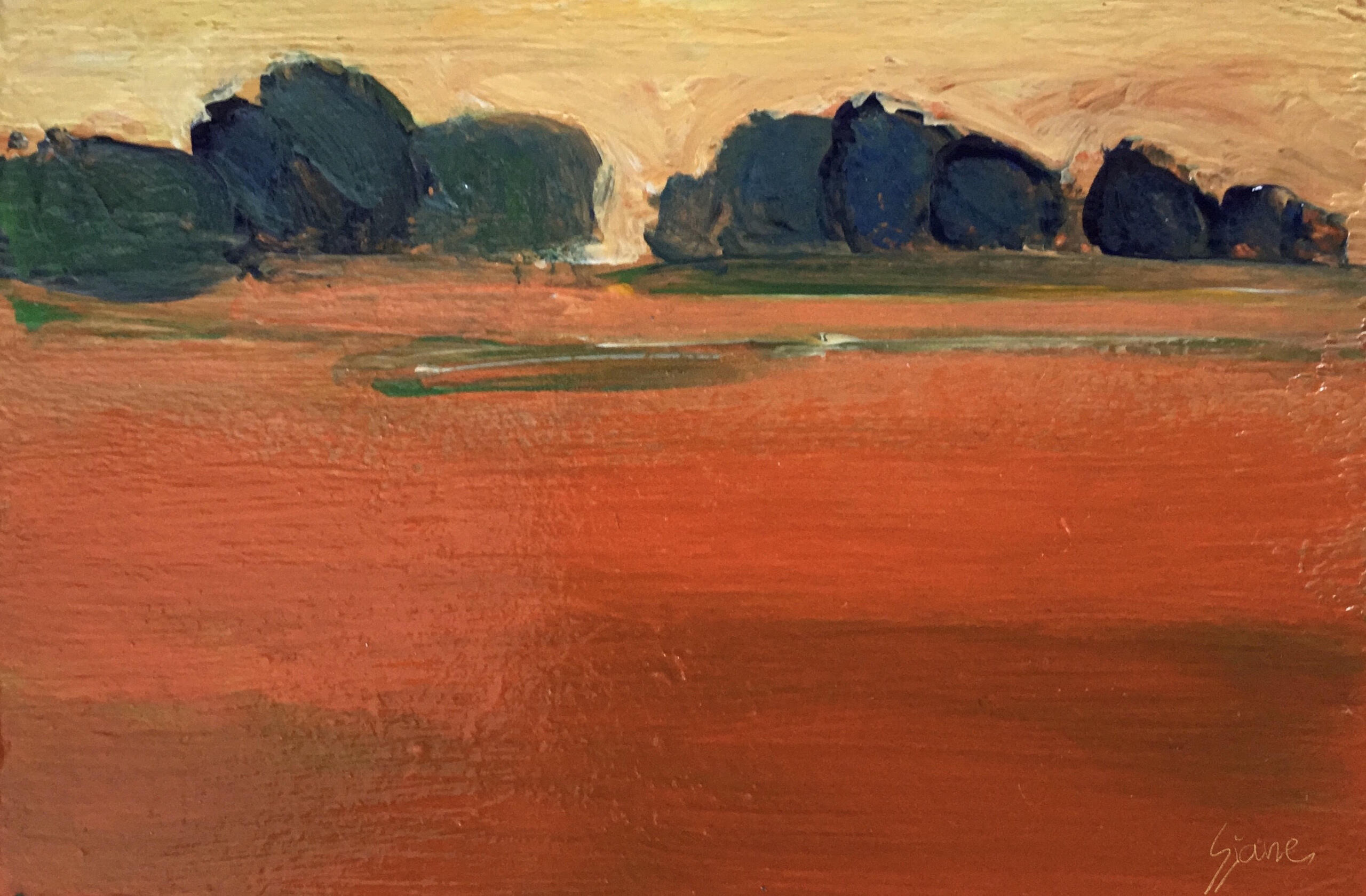 Het landschap is mijn grootste inspiratiebron. In de zomer heb ik veel buiten geschilderd. Mijn landschappen zijn kleurrijk en sterk geabstraheerd. Op het moment zijn mijn landschappen abstract.