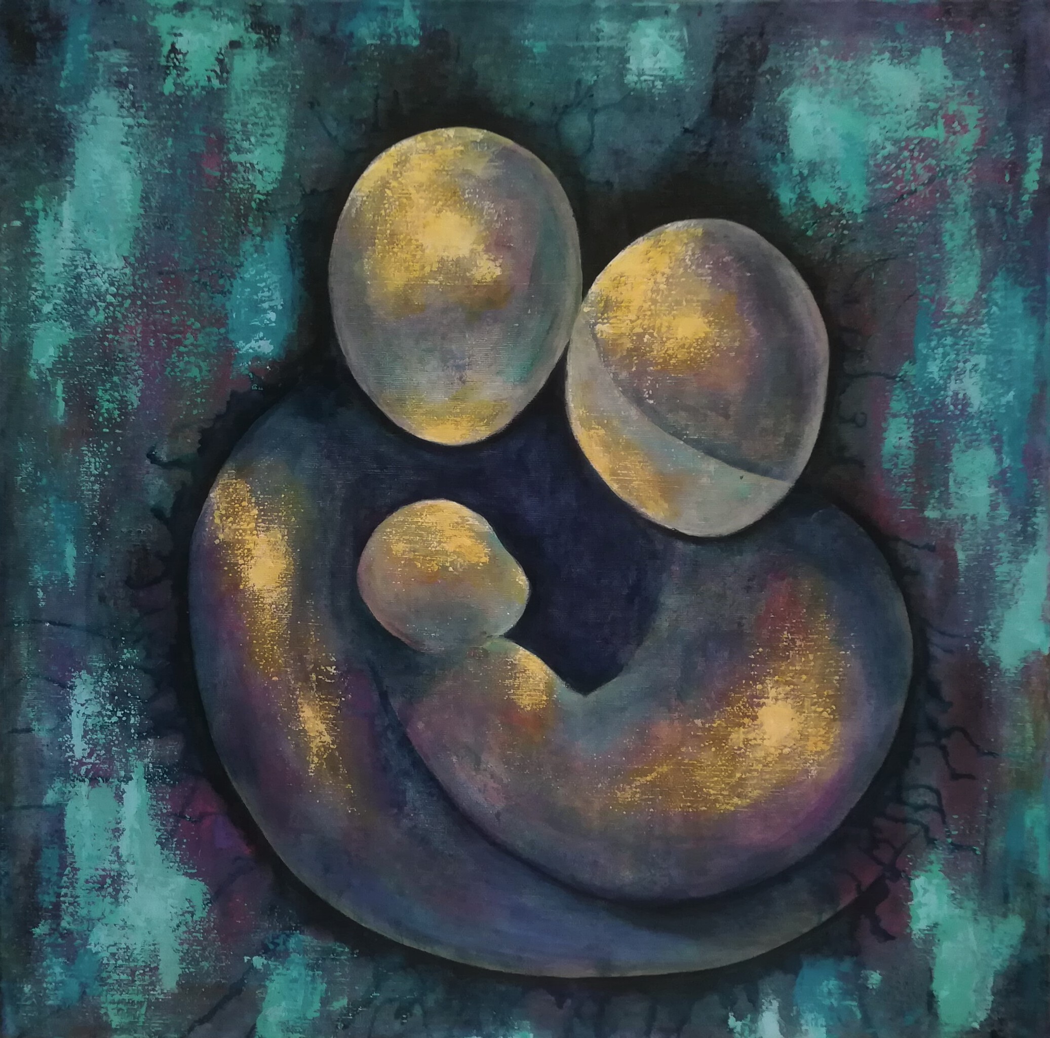 Symbolisch silhouet van een gezin. Acryl op canvas 50x50cm. € 250,-