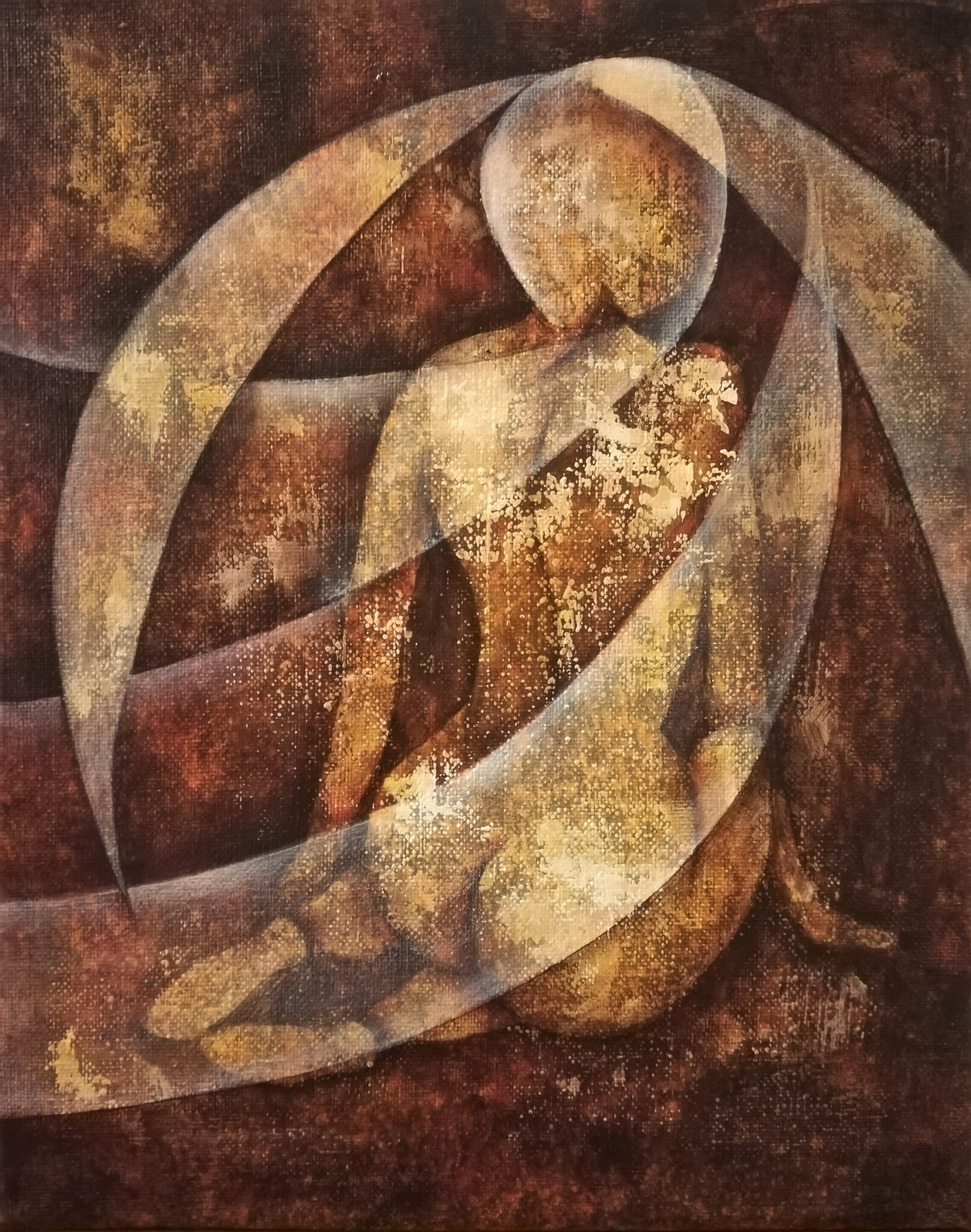 Vrouwelijk Naakt Vrouw Silhouet Zittend Bruin Tinten Sluier Sjaal Lijnenspel