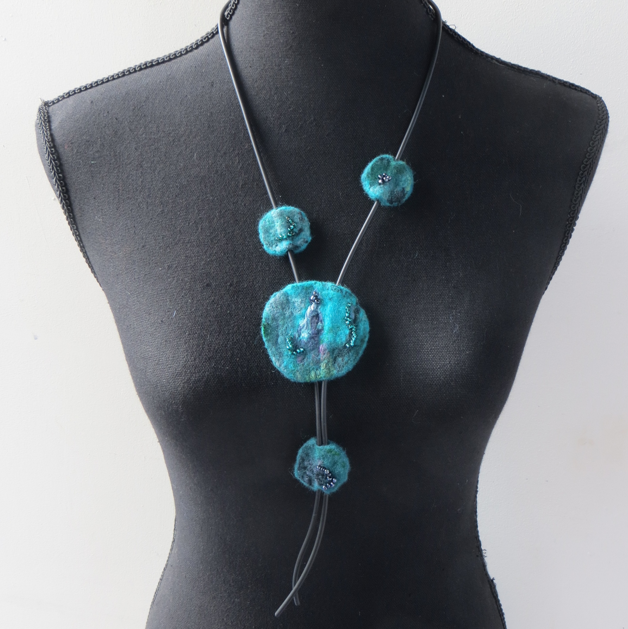 Vilten is mijn passie. Naast schilderijen en objecten van vilt maak ik ook functionele kunst, zoals sieraden, sjaals e.d.
