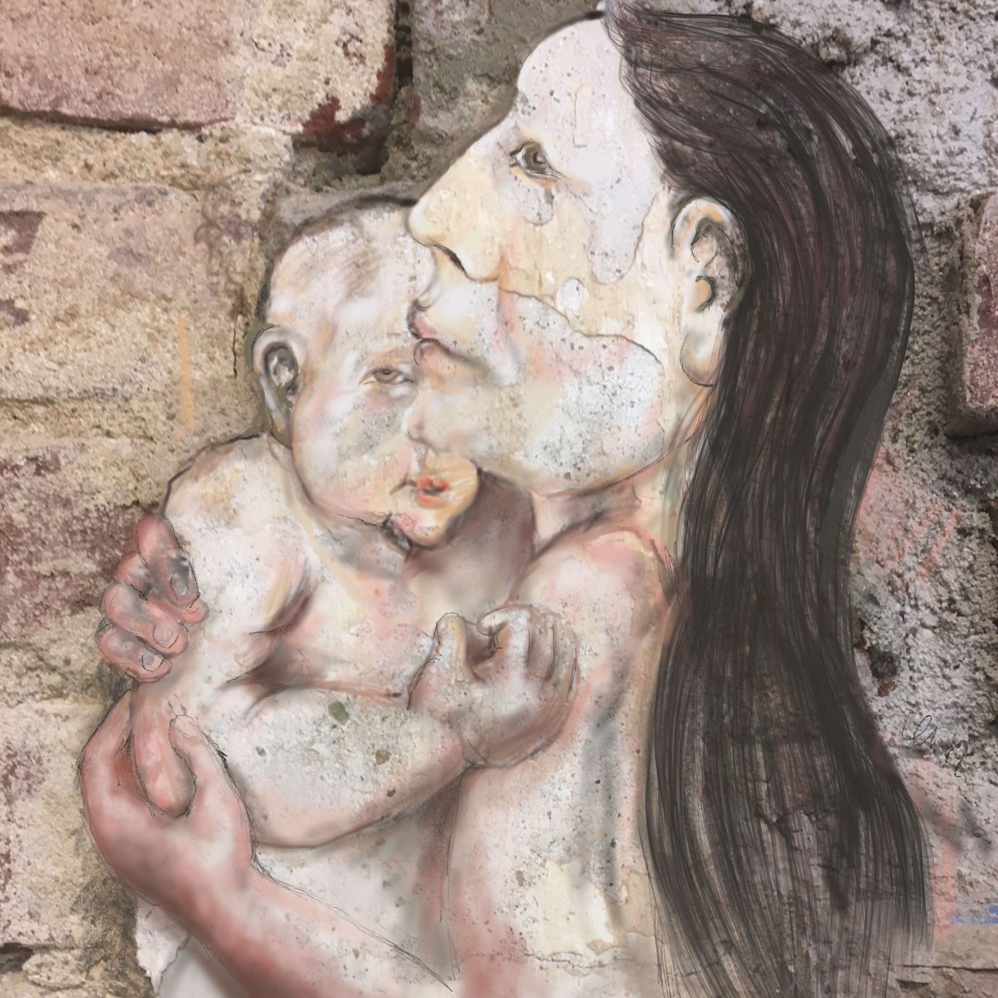 Kind Steen Moeder Muur Thuis Vluchten Homeless Zwerven Muralis Igraphic Thuisloos