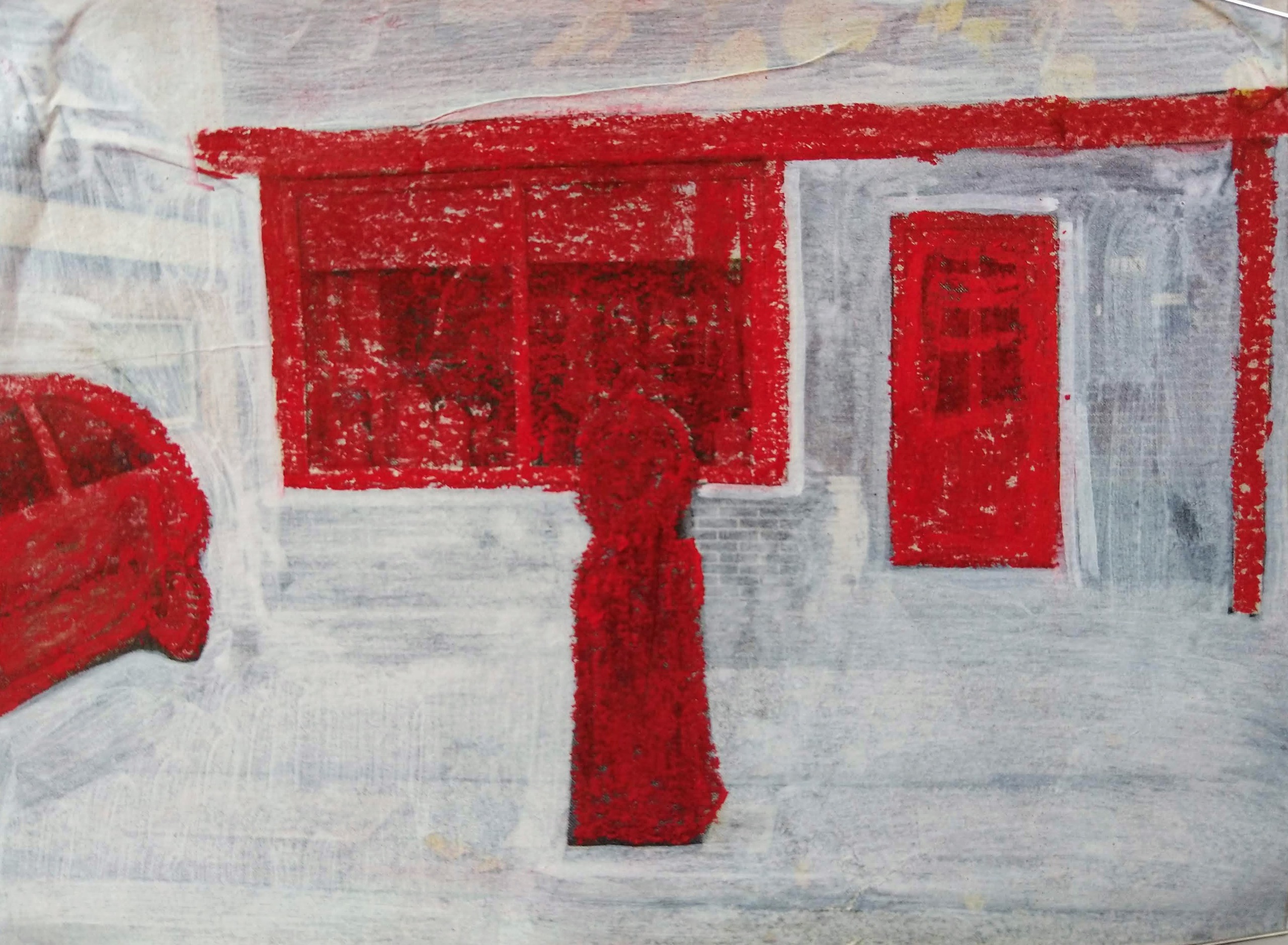 Bestaande foto, witte acrylverf, pastelkrijt