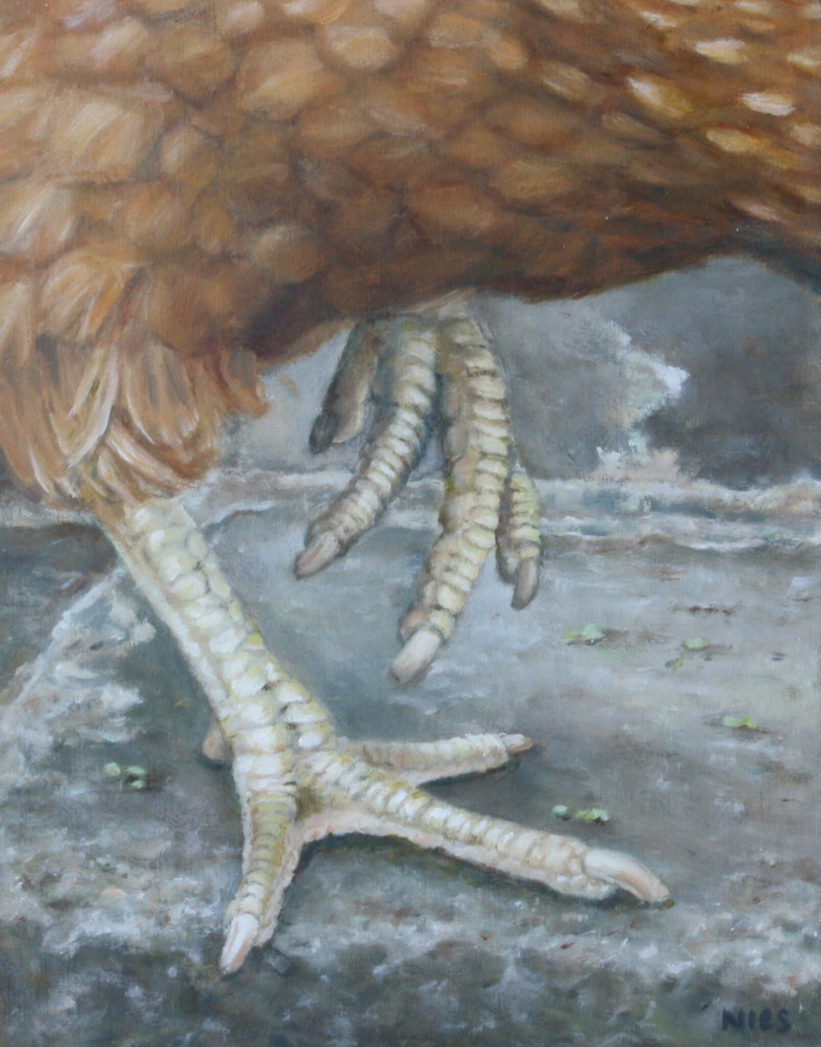 Nies van Dijk schildert met olieverf en eitempera. De dynamiek van vergankelijkheid in de natuur is een terugkerend thema in haar werk.